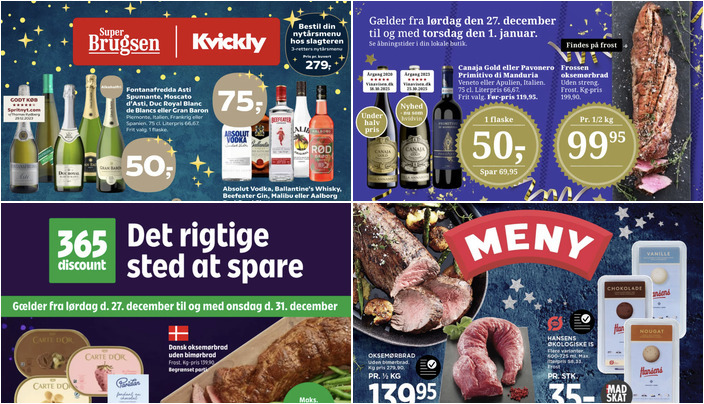 SuperBrugsen tilbyder Fontanafredda Asti Spumante, Moscato d'Asti, Duc Royal Blanc de Blancs eller Gran Baron til en pris af 50 kr. pr. flaske. Tilbuddet gælder fra lørdag 27. december til onsdag 31. december.