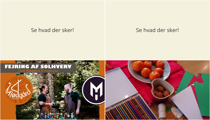Lørdag den 20. december inviterer Mjødgård til årets mest magiske aften, hvor du kan opleve en stemningsfuld vintersolhvervsfest med mjød, mad og lys. Arrangementet vil byde på en 2-retters middag inspireret af det nordiske køkken, mjød fra det prisvindende bryggeri, en hedensk solhvervsceremoni, samt musik, levende lys og bål. Der er også mulighed for overnatning i bryggeriets lokaler. Det bliver en rå, ægte og uforglemmelig oplevelse.